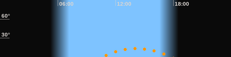 | Höchster Stand (Kulmination) | 14:09 Uhr (h = 13,5°) |