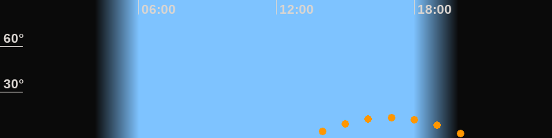 | Höchster Stand (Kulmination) | 16:54 Uhr (h = 13,5°) |