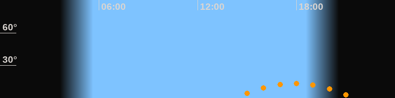 | Höchster Stand (Kulmination) | 17:54 Uhr (h = 13,5°) |