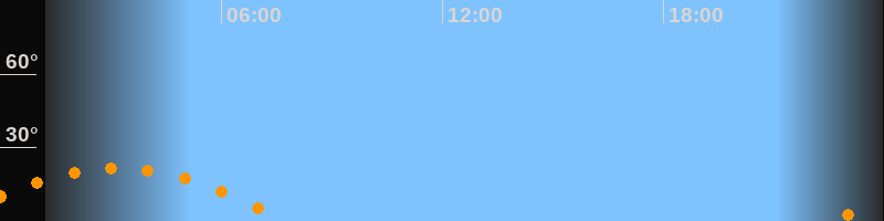 Aufgang22:34 Uhr im Südosten (αAz = 117,7°)