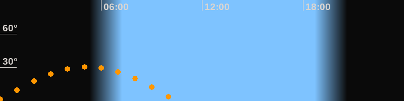 Höchster Stand (Kulmination)05:09 Uhr (h = 30,7°)