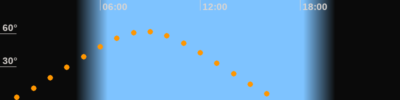 | Höchster Stand (Kulmination) | 08:41 Uhr (h = 62°) |