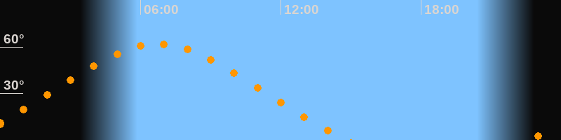 | Höchster Stand (Kulmination) | 06:44 Uhr (h = 62°) |