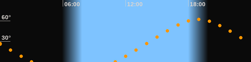 | Höchster Stand (Kulmination) | 18:57 Uhr (h = 62°) |