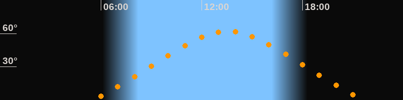 | Höchster Stand (Kulmination) | 13:34 Uhr (h = 62°) |