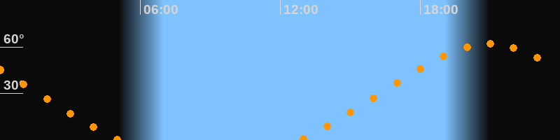 | Aufgang | 12:50 Uhr im Nordosten (αAz = 51,5°) |