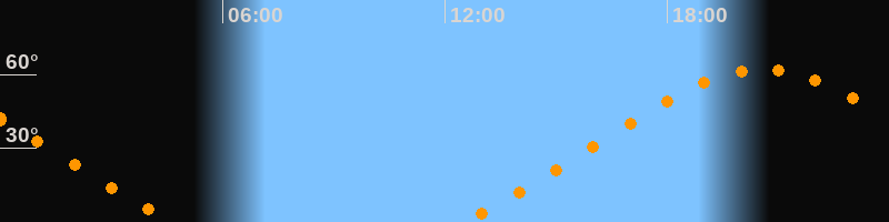 | Aufgang | 12:28 Uhr im Nordosten (αAz = 51,5°) |