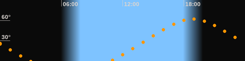 | Höchster Stand (Kulmination) | 18:52 Uhr (h = 62°) |