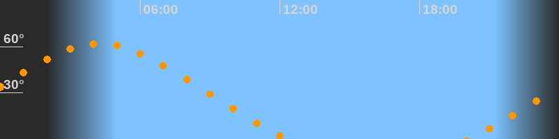 | Untergang | 12:21 Uhr im Nordwesten (αAz = 308,5°) |