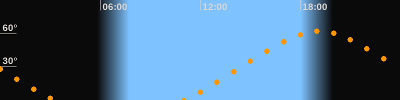 | Höchster Stand (Kulmination) | 19:06 Uhr (h = 62°) |