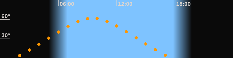 | Höchster Stand (Kulmination) | 09:31 Uhr (h = 62°) |
