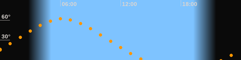 | Höchster Stand (Kulmination) | 06:12 Uhr (h = 62°) |