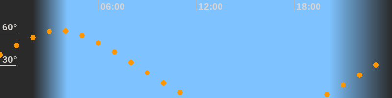 | Untergang | 11:45 Uhr im Nordwesten (αAz = 308,5°) |