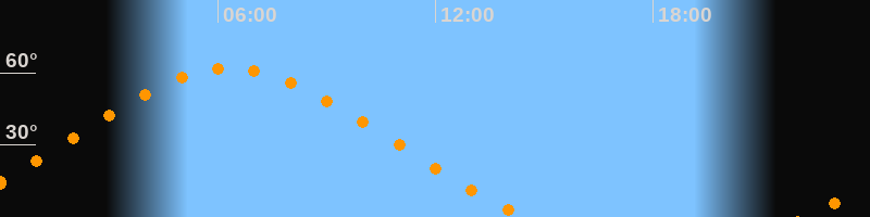 | Höchster Stand (Kulmination) | 06:20 Uhr (h = 62°) |