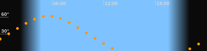 | Höchster Stand (Kulmination) | 05:34 Uhr (h = 62°) |