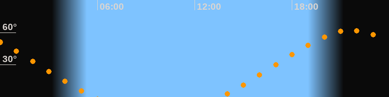 | Aufgang | 13:32 Uhr im Nordosten (αAz = 51,5°) |