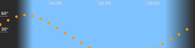 | Aufgang | 18:59 Uhr im Nordosten (αAz = 51,5°) |
