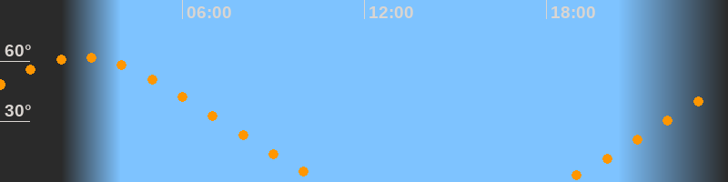 | Aufgang | 18:29 Uhr im Nordosten (αAz = 51,5°) |