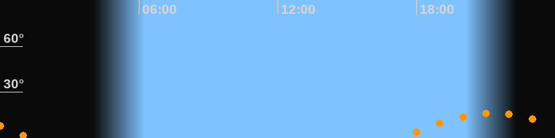 | Aufgang | 17:19 Uhr im Südosten (αAz = 127,5°) |