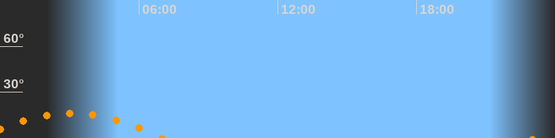 | Untergang | 07:02 Uhr im Südwesten (αAz = 232,5°) |