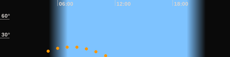 | Untergang | 11:21 Uhr im Südwesten (αAz = 232,5°) |