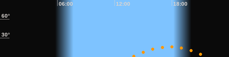 | Höchster Stand (Kulmination) | 17:43 Uhr (h = 16,1°) |