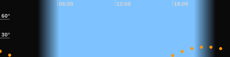 | Aufgang | 17:32 Uhr im Südosten (αAz = 127,5°) |