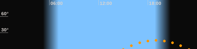 | Aufgang | 15:02 Uhr im Südosten (αAz = 127,5°) |
