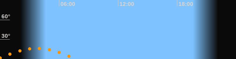 | Untergang | 07:41 Uhr im Südwesten (αAz = 232,5°) |