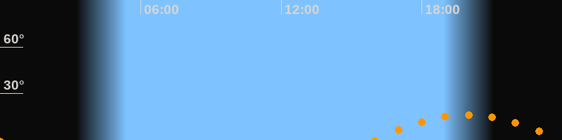 | Untergang | 23:53 Uhr im Südwesten (αAz = 232,5°) |