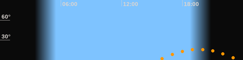 | Untergang | 23:33 Uhr im Südwesten (αAz = 232,5°) |