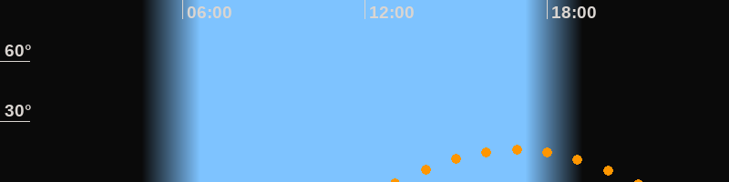 | Aufgang | 13:00 Uhr im Südosten (αAz = 127,5°) |