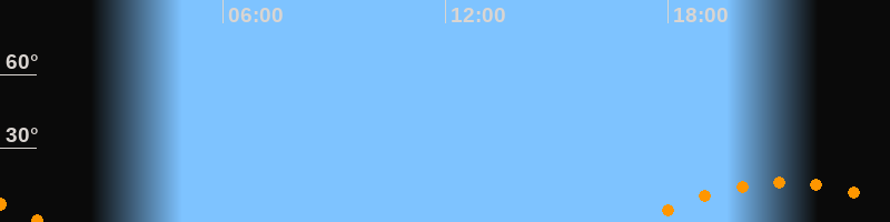 | Untergang | 01:12 Uhr im Südwesten (αAz = 232,5°) |