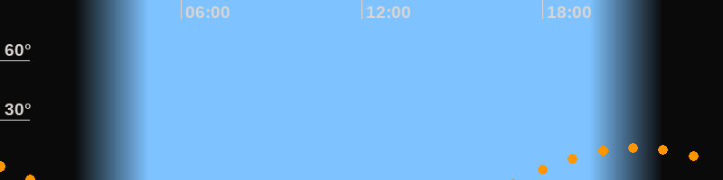 | Untergang | 01:08 Uhr im Südwesten (αAz = 232,5°) |