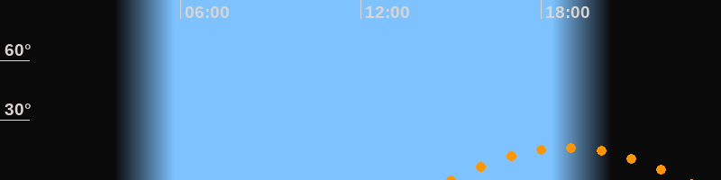 | Aufgang | 14:55 Uhr im Südosten (αAz = 127,5°) |