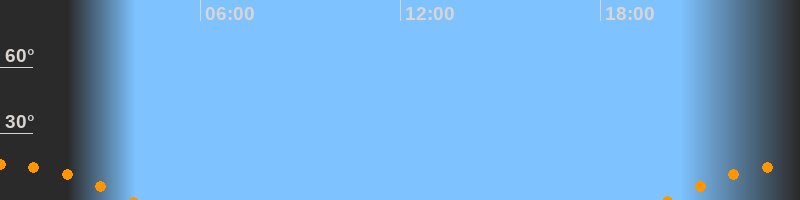 | Untergang | 03:58 Uhr im Südwesten (αAz = 232,5°) |