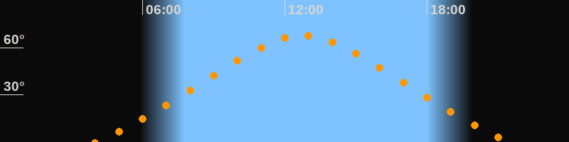 | Höchster Stand (Kulmination) | 12:46 Uhr (h = 67,6°) |