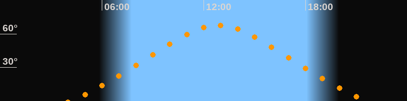 | Höchster Stand (Kulmination) | 12:52 Uhr (h = 67,6°) |
