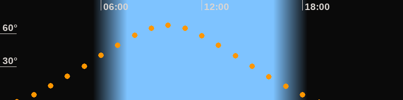 | Höchster Stand (Kulmination) | 09:59 Uhr (h = 67,6°) |