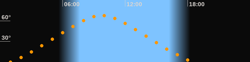 | Höchster Stand (Kulmination) | 09:44 Uhr (h = 67,6°) |
