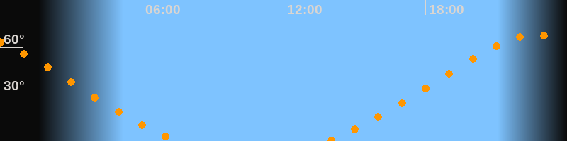 | Untergang | 07:33 Uhr im Nordwesten (αAz = 319,7°) |