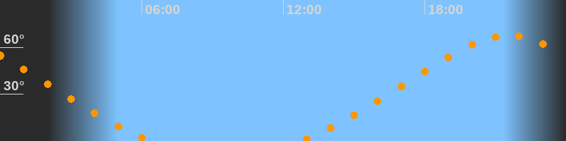 | Aufgang | 12:43 Uhr im Nordosten (αAz = 40,3°) |