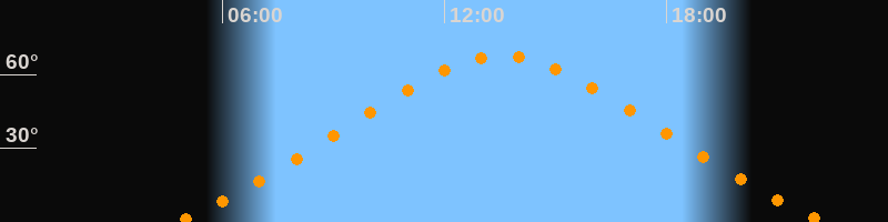 | Höchster Stand (Kulmination) | 13:32 Uhr (h = 67,6°) |