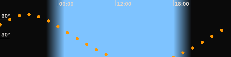 | Untergang | 11:40 Uhr im Nordwesten (αAz = 319,7°) |