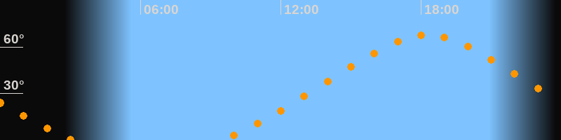 | Höchster Stand (Kulmination) | 18:15 Uhr (h = 67,6°) |