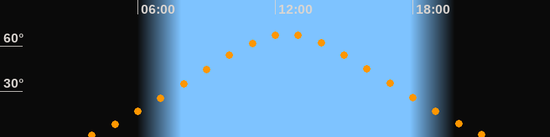 | Höchster Stand (Kulmination) | 12:30 Uhr (h = 67,6°) |