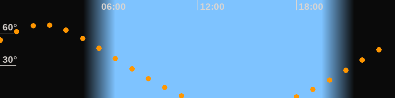 | Aufgang | 17:43 Uhr im Nordosten (αAz = 40,3°) |