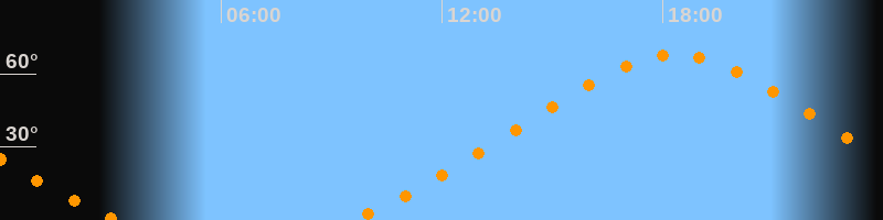 | Höchster Stand (Kulmination) | 18:20 Uhr (h = 67,6°) |