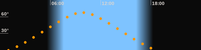 | Höchster Stand (Kulmination) | 09:50 Uhr (h = 67,6°) |