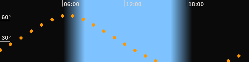 Höchster Stand (Kulmination)06:30 Uhr (h = 67,6°)